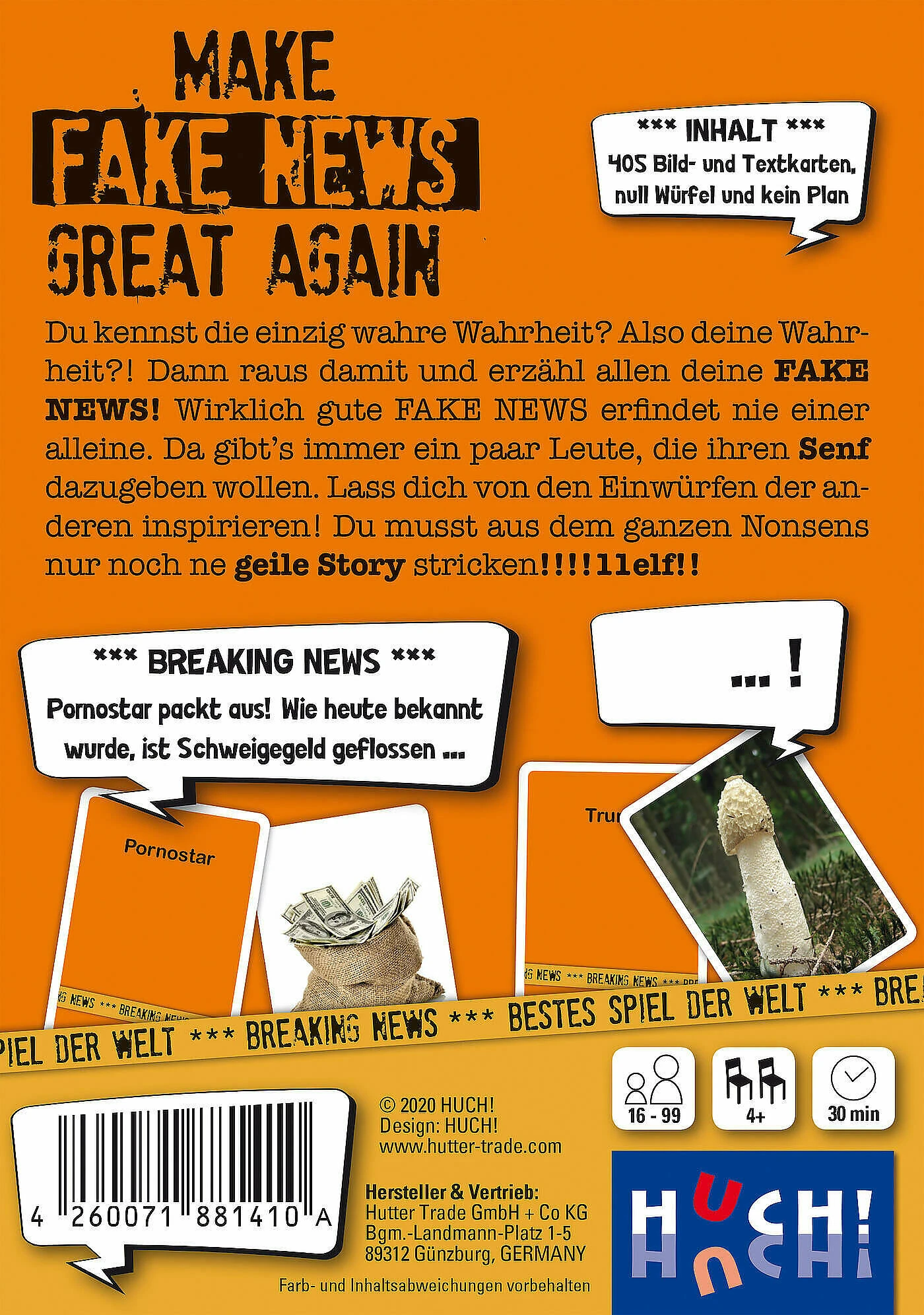 Jeder wirft eine Karte in den Ring, doch du machst die News. Verwerte die Infos der anderen. Aber Vorsicht, einer lügt: Du entscheidest wer. Lass die Karte auffliegen und verteile Minuspunkte.